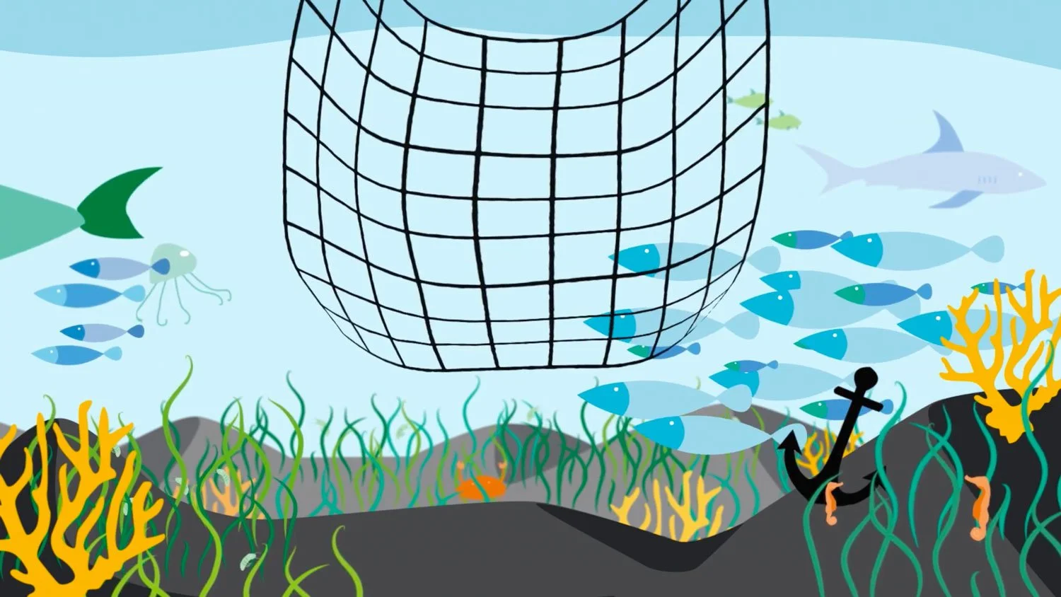 In this short video, we’ll learn some of the catch methods that can be problematic for fish stocks and other catch methods that are better for the environment. We’ll see why it’s important that fish farms are careful about keeping farmed fish separate from wild fish. And we’ll find out some tools that help us to find sustainable fish at the shop, like the MSC and ASC eco-labels!