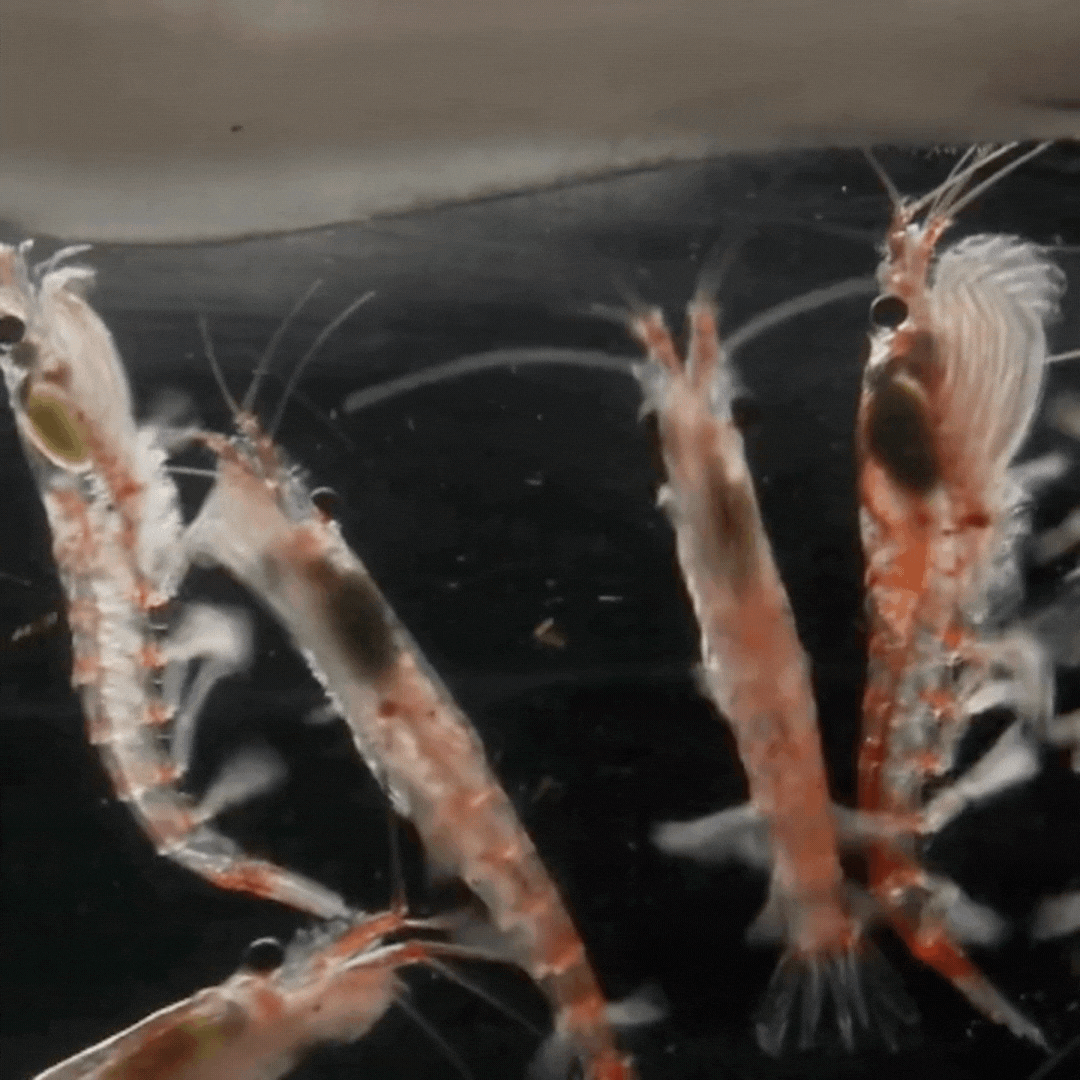 There are at least 85 species of krill found in the ocean. They are tiny shrimp-like crustaceans that grow to about an inch long. Most krill are bioluminescent, meaning their bodies light up like a light bulb! Krill comprise the largest biomass of any animal species after humans.