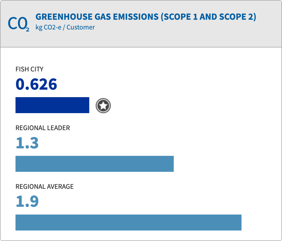 Fish City also ranks as a regional leader in greenhouse gas emissions for Scope 1 and Scope 2.