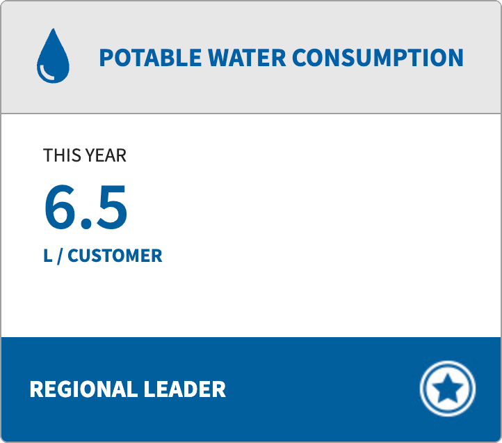 This means our water use per customer is significantly lower than both the regional average and our closest competitor. In total during 2025, our water consumption was measured at 340,000 litres.
