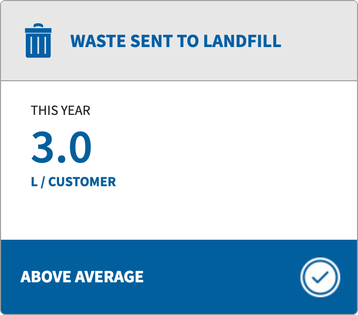 While we match the regional average and perform better than many businesses, we recognise there is still room to improve in this area. In 2025, our total waste sent to landfill was 157,904 litres.